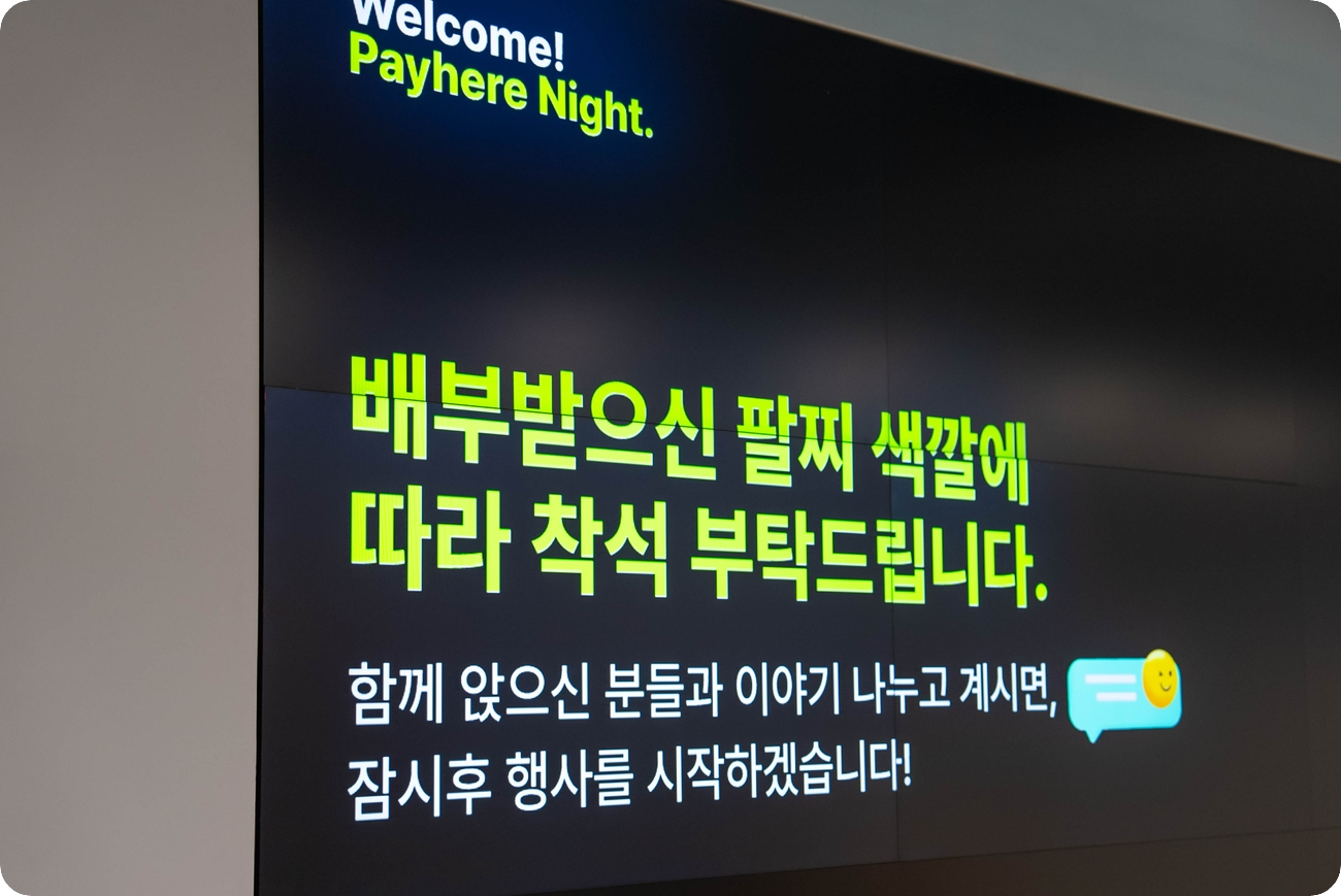 회사 내 구성원이 많아지고, 규모가 커질수록 이전에 비해 모르는 동료들이 많아지는 건 자연스러운 과정일 겁니다. 페이히어도 이 과정을 거치고 있었고, 새로운 구성원분들과 함께하는 자리를 마련해야 할 필요성을 점점 느끼기 시작했습니다. 이 시점에 한 번 기회를 만들어보자고 생각했어요. 마침 페이히어에서 좋은 소식도 있었고요!(시리즈 B 투자 유치를 축하합니다🎉)