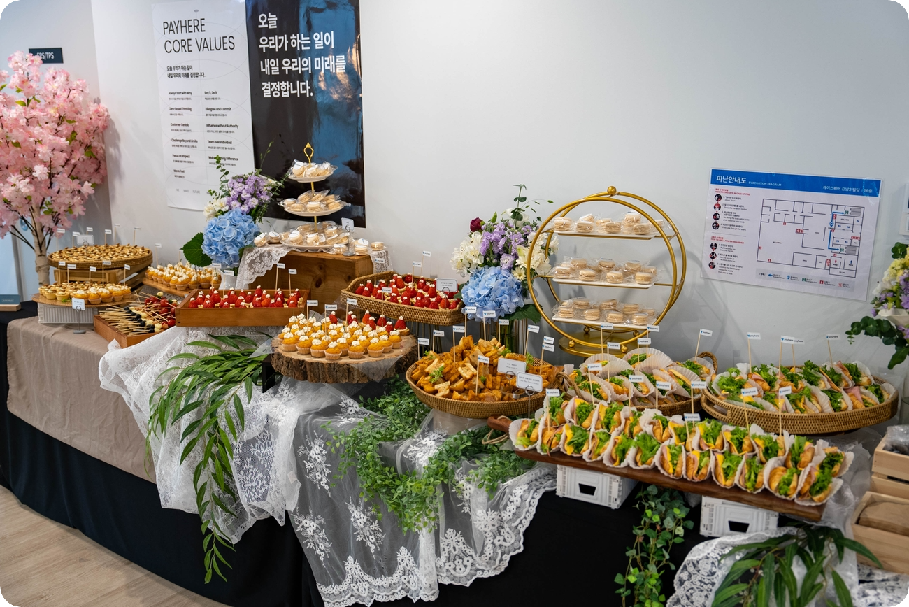 케이터링 자체는 이미 다양한 기업 및 행사에서 하고 있지만, 페이히어에서는 한 번도 시도해 보지 않았기에 구성원분들에게도 신선한 요소 중 하나였죠.