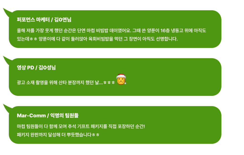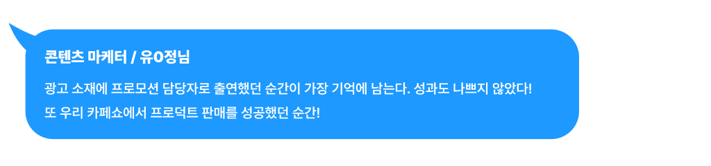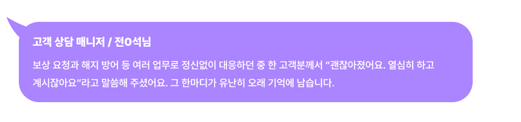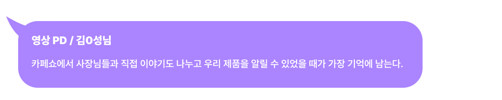 함께 일하는 동료, 또 고객이 건네준 짧은 문장에 동기부여된 순간도 있었어요. 의외의 순간에 들었던 말 한마디가 힘이 되어 아직까지 기억에 남는 것 같아요.