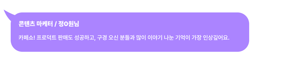 고객을 직접 만나는 이 순간을 위해, 몇 달에 걸쳐 모든 구성원이 열심히 준비했답니다 ☕️