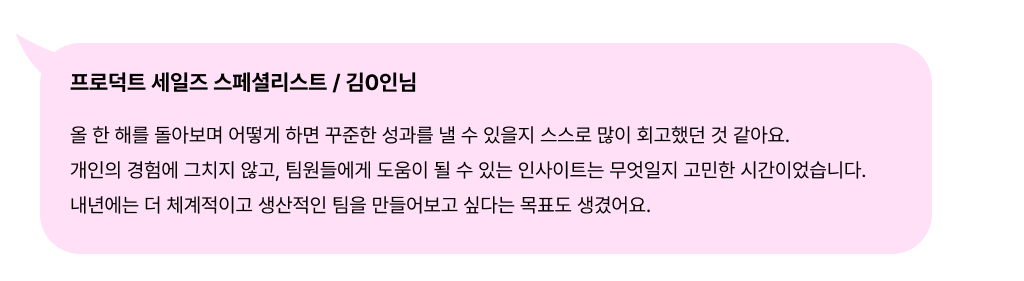 그럼 이제, 결과가 있기까지의 과정을 들여다볼 시간입니다. 구성원 분들이 직접 적어준 2025년의 순간들을 하나씩 소개해볼게요.