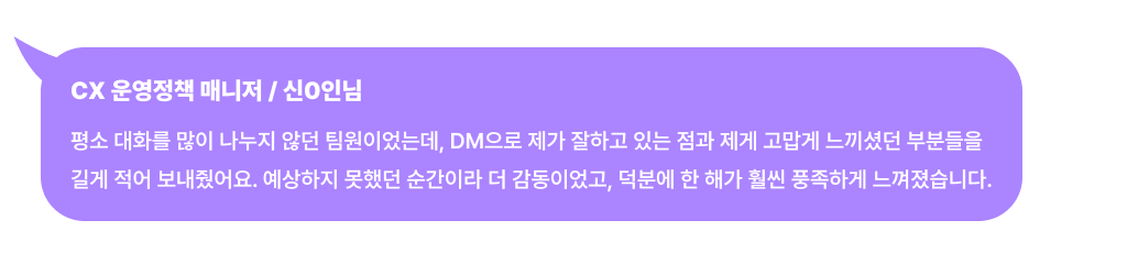 합류한 순간뿐만 아니라, 함께 일하는 시간 자체가 좋은 기억으로 남을 수 있도록 피플팀도 꾸준히 노력하겠습니다 💪