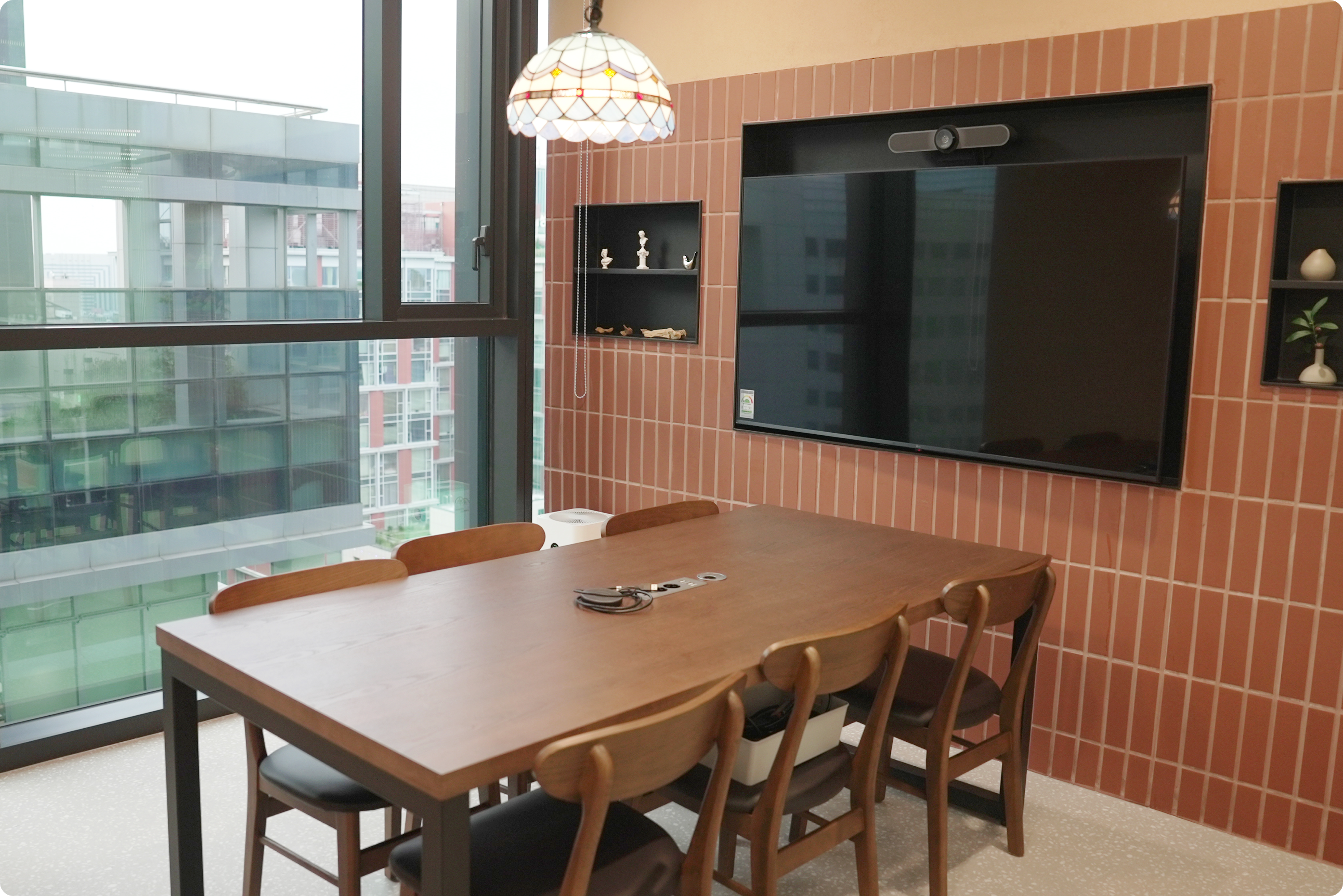 공방 컨셉의 회의실도 있습니다. 공방만의 따듯한 분위기를 만들기 위해 갈색 계열로 회의실을 도색하고, 다양한 소품들을 비치해 두었어요.