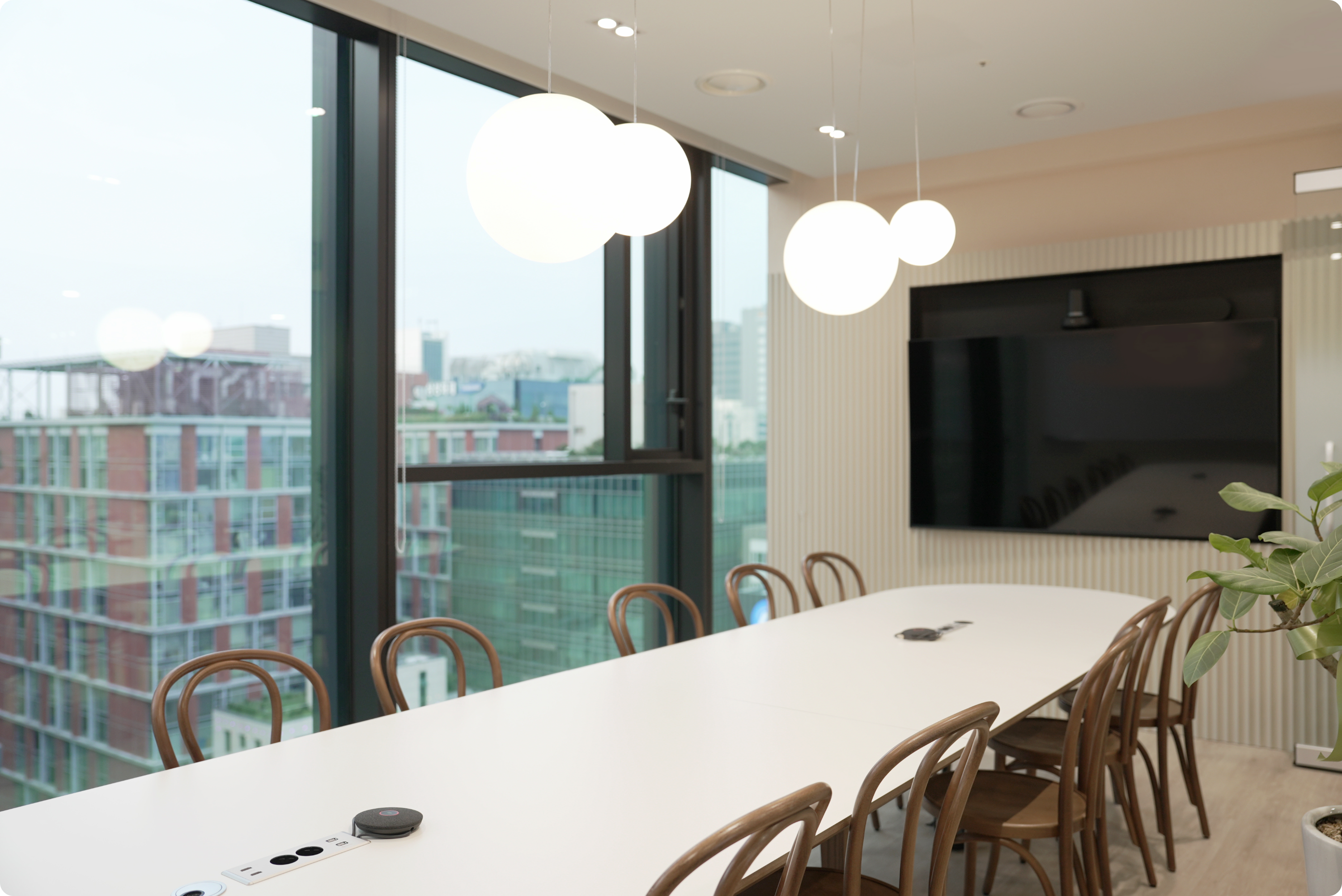 꽃집 컨셉의 회의실입니다. 안락한 분위기가 조성되어 있어 1on1 미팅이나 커피챗 용도로 구성원들의 인기가 많은 회의실입니다.