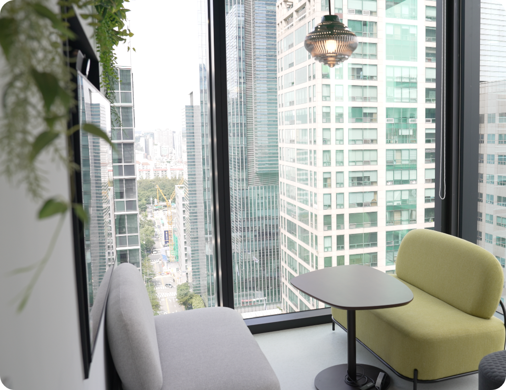 16층 메인 라운지를 방문할 필요 없이 각 층에 위치한 미니 라운지를 방문해 주셔도 좋습니다. 근무 중 동료와 함께 커피 한잔 마시며 아이디어를 나누거나, 소소한 대화를 나눌 수 있어요. 실제로 많은 구성원이 이 곳에서 스쿼드 회의, 데일리 미팅을 진행하고 있어요.