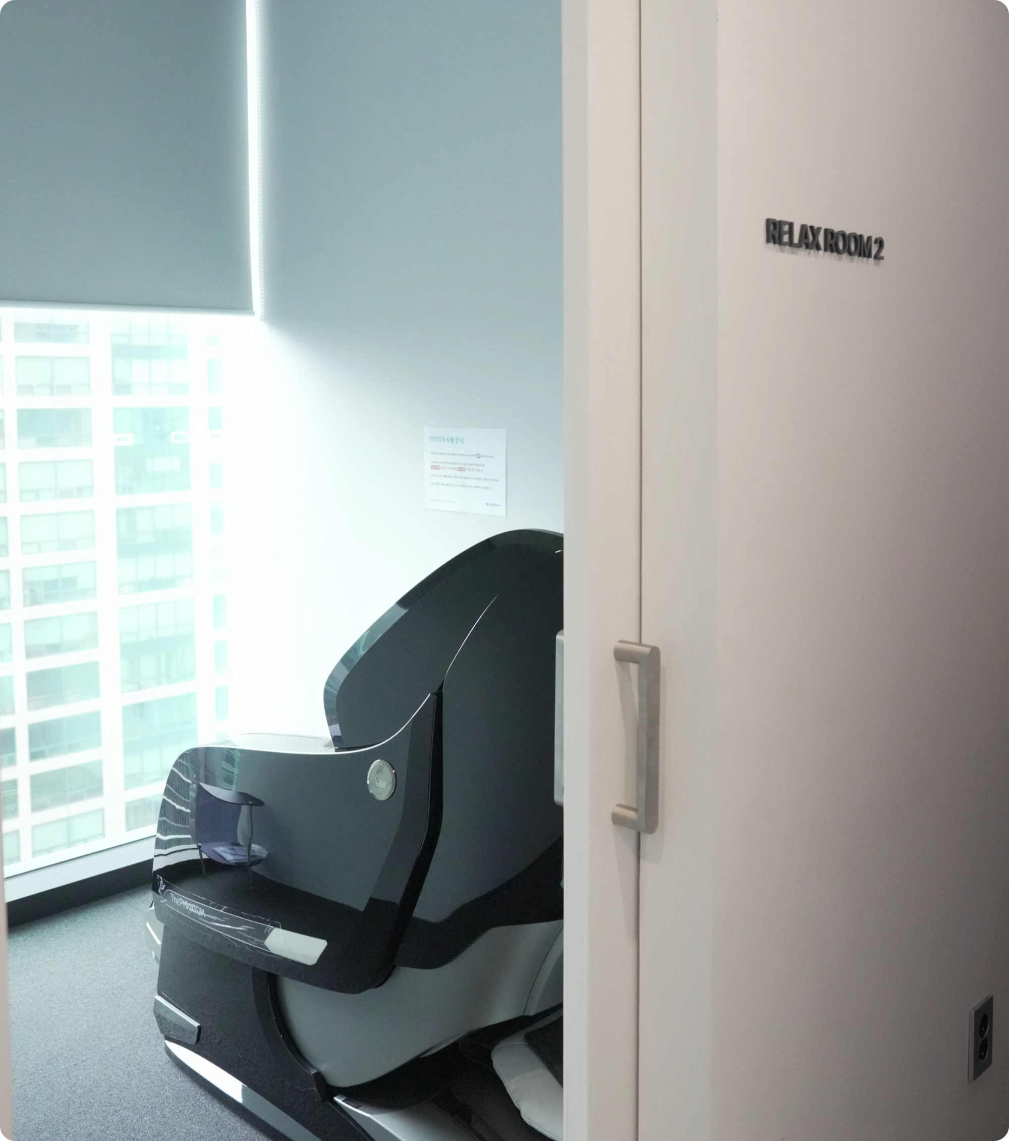 🙏 릴렉스룸이요! 점심시간에 30분씩 눈 붙이기 딱 좋은 공간이에요. 안마의자가 너무 편해서 잠시 낮잠 자기에 너무 좋아요. 창밖 뷰도 탁 트여 있어서 머리 식히기도 좋아요.