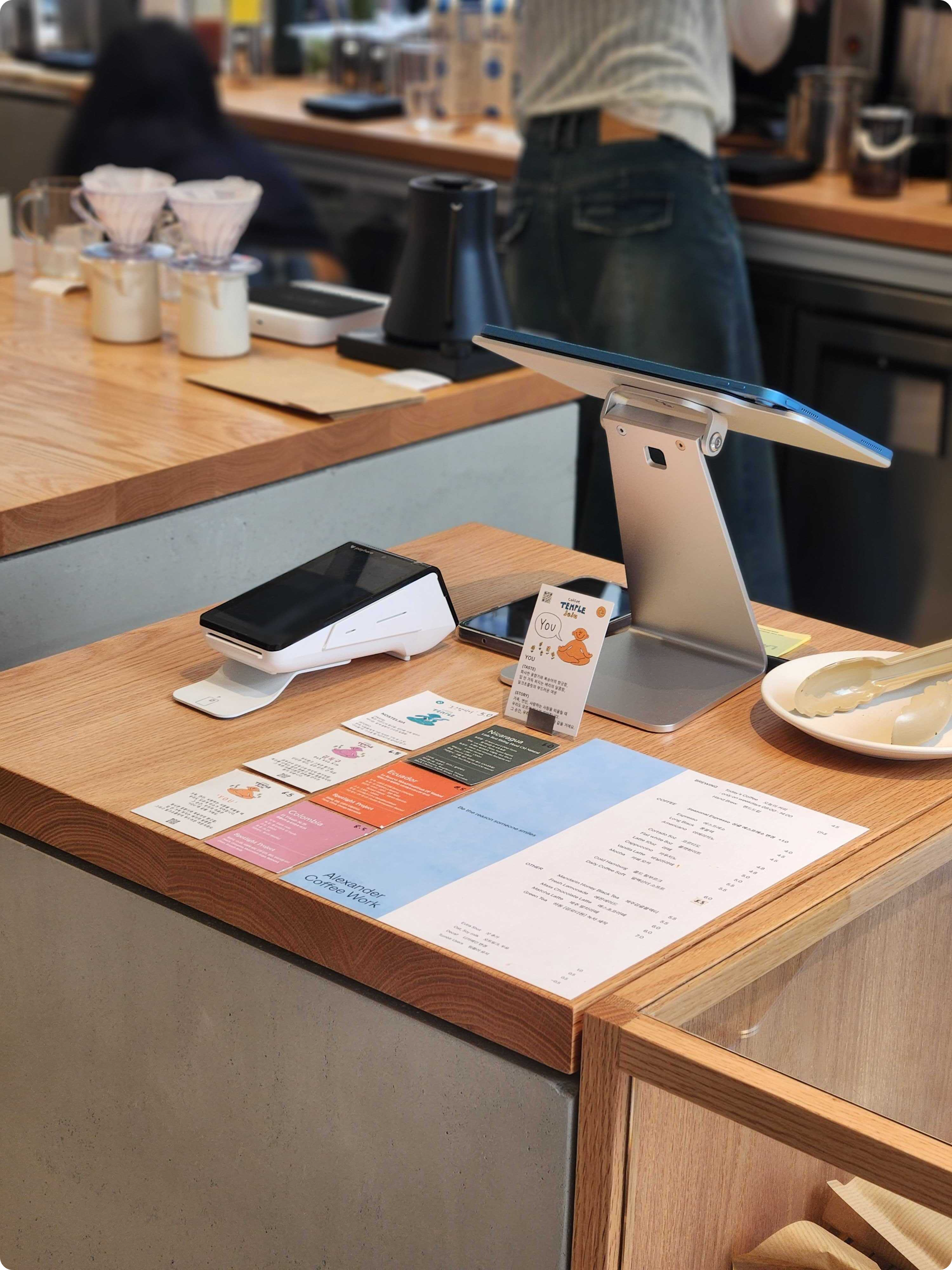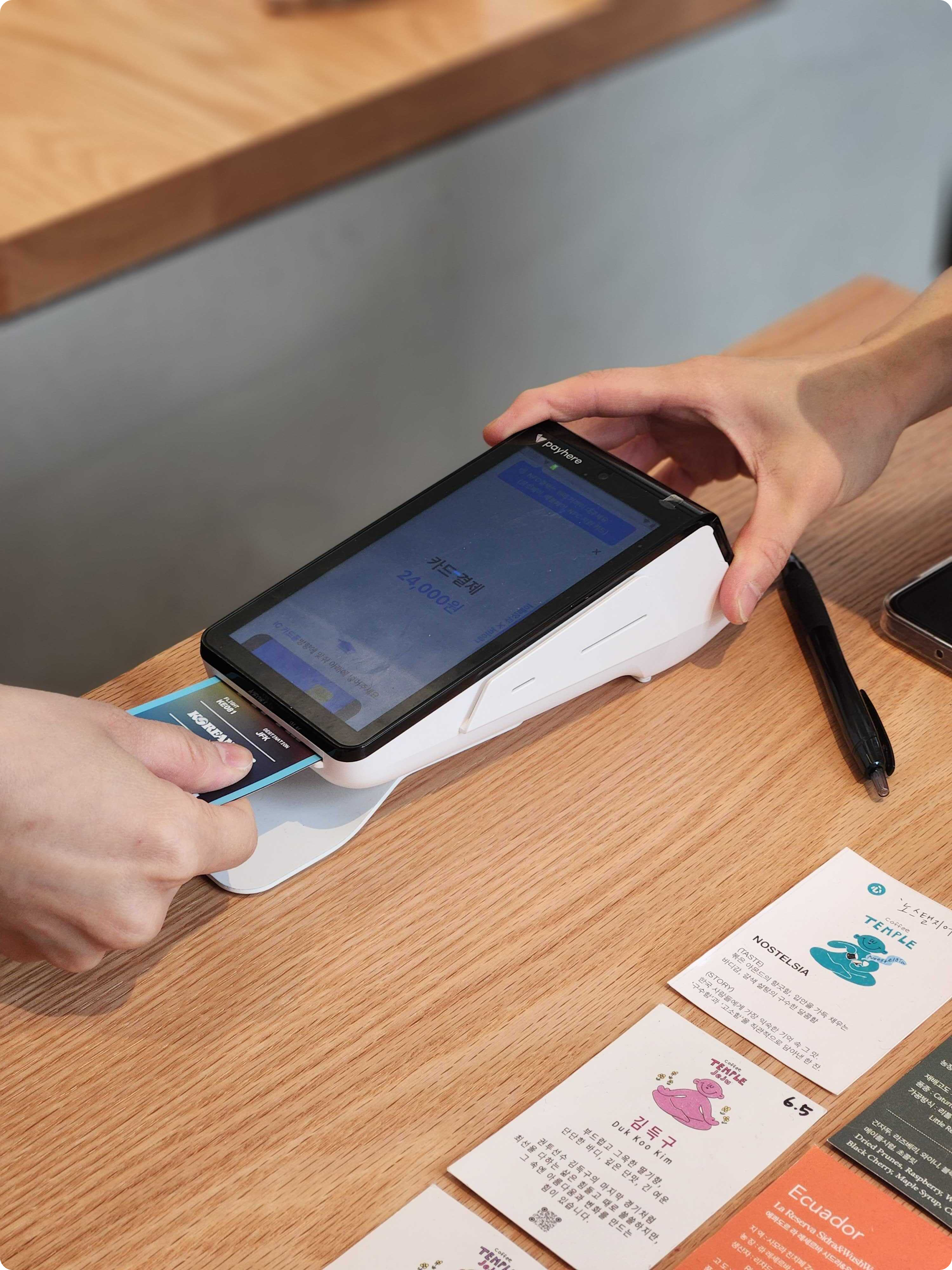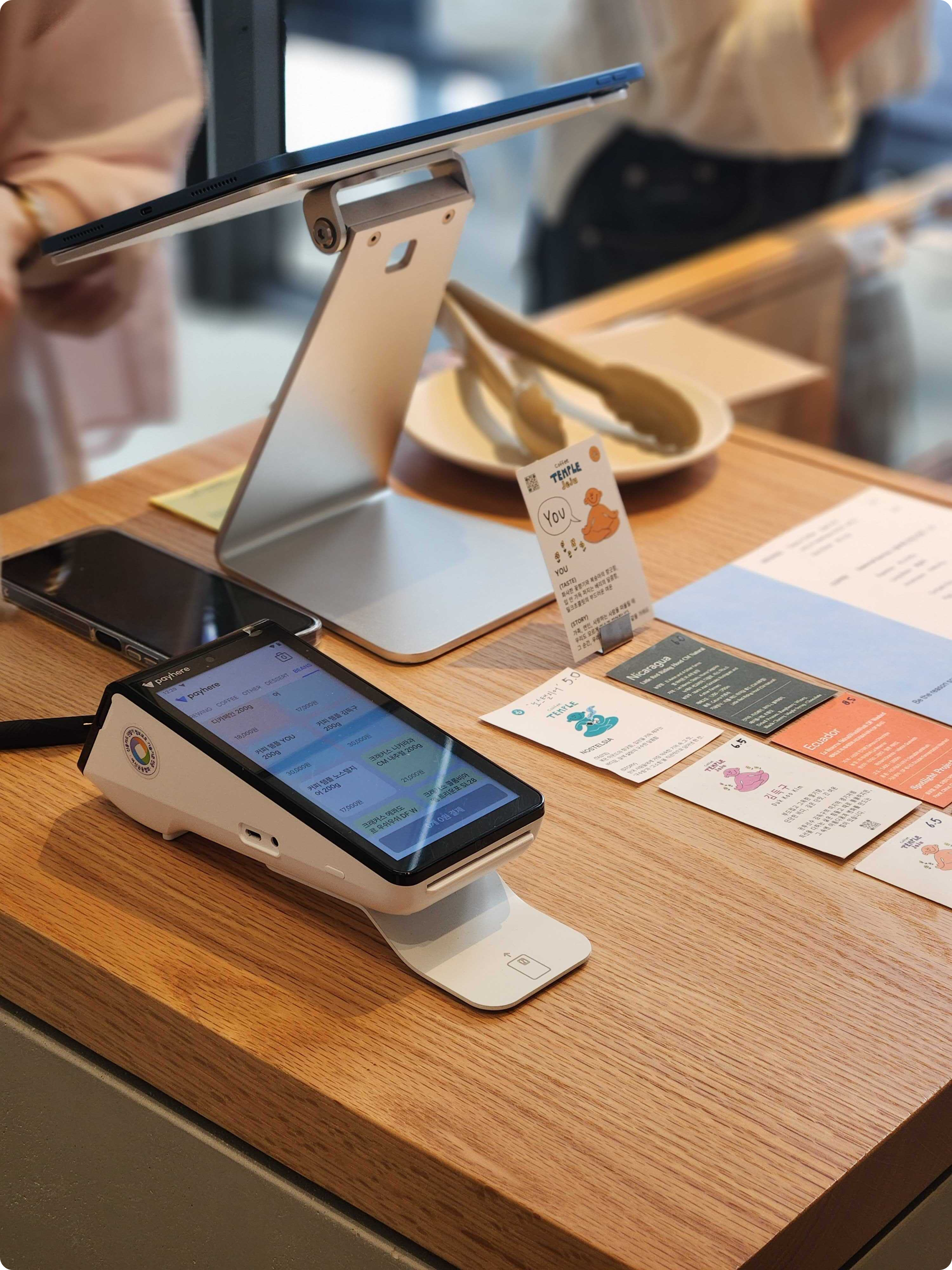 🙏 매장에서 보는 테이블오더 만드는 회사라고 얘기해요. 예쁜 카페 가면 큰 POS 말고, 태블릿처럼 심플하고 예쁜 기기 보이잖아요. 그거 만드는 회사라고 설명하면 다들 “아~” 하고 알아들어요.